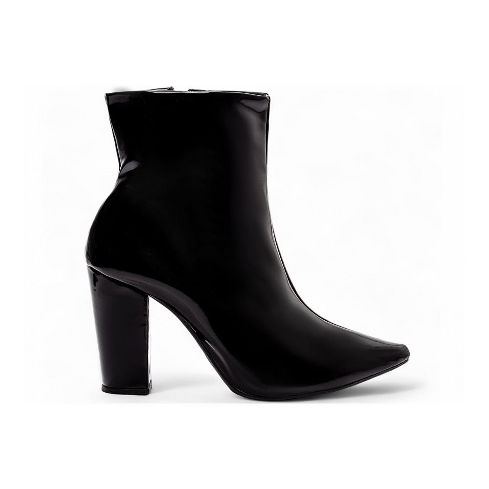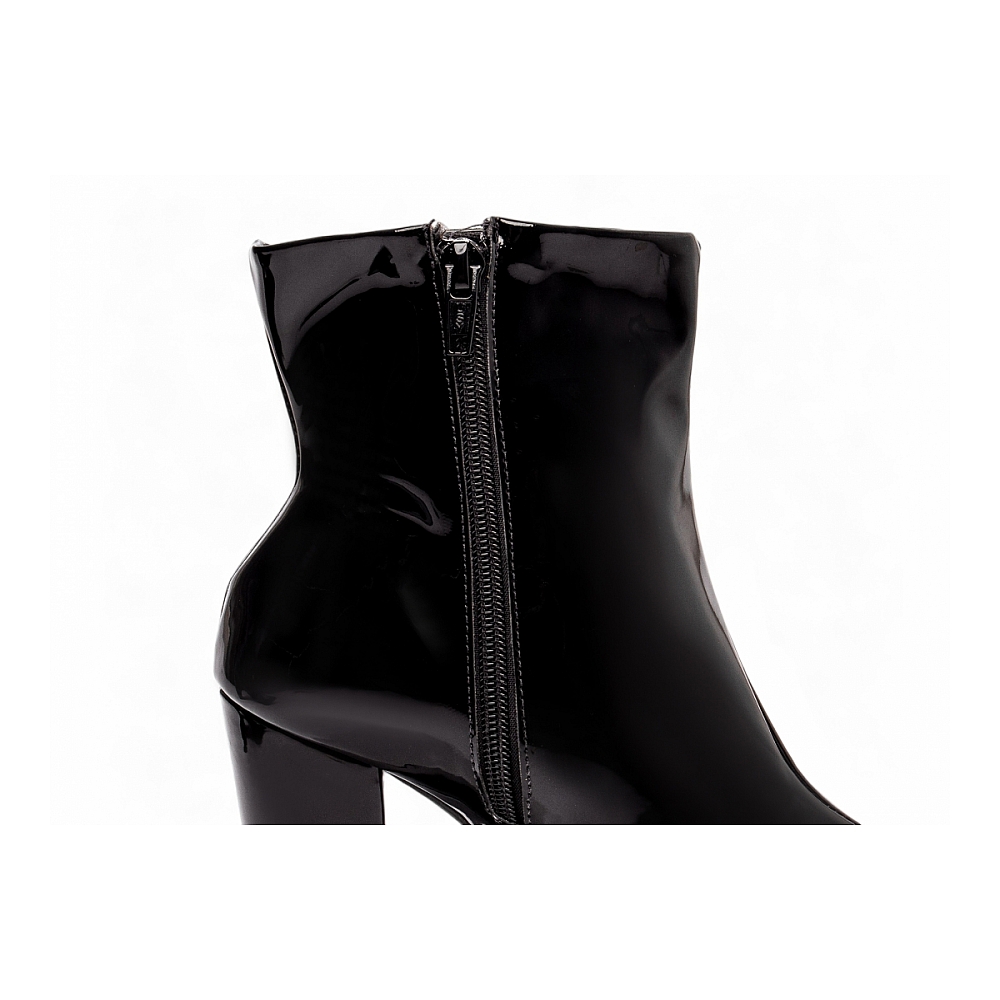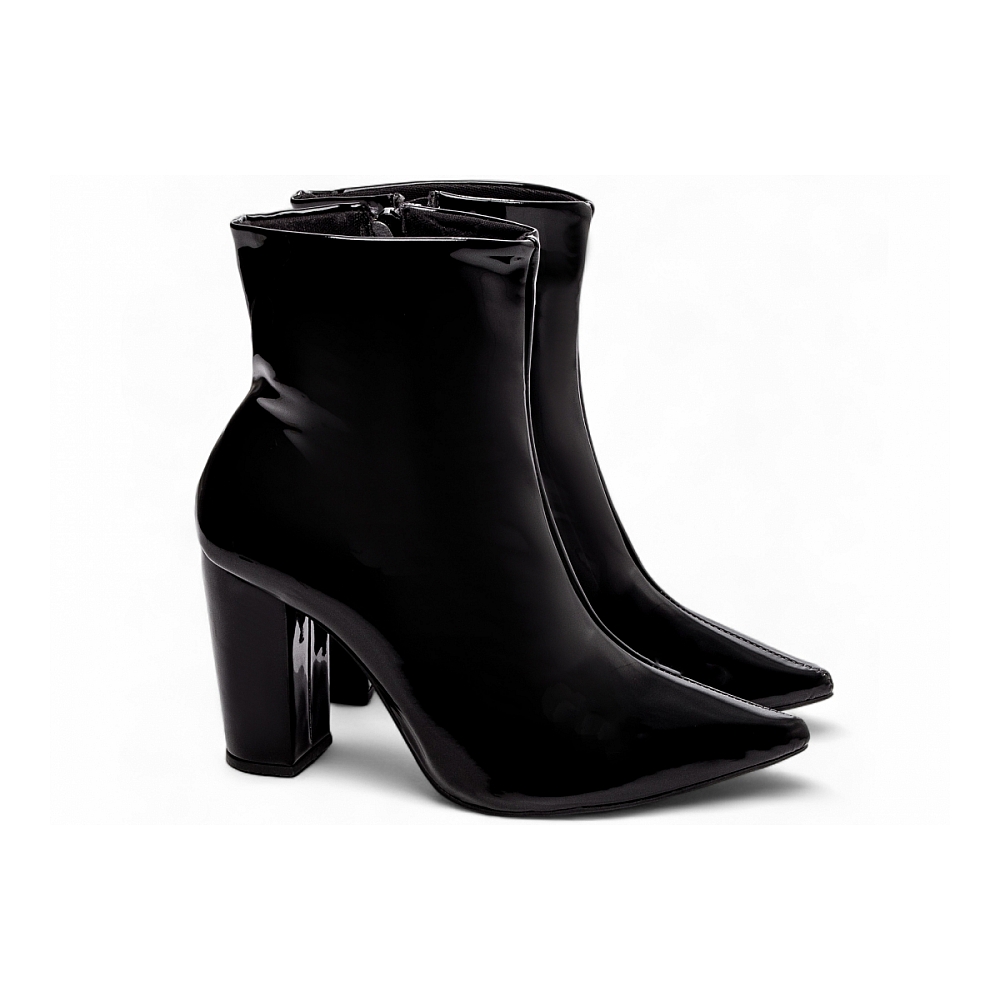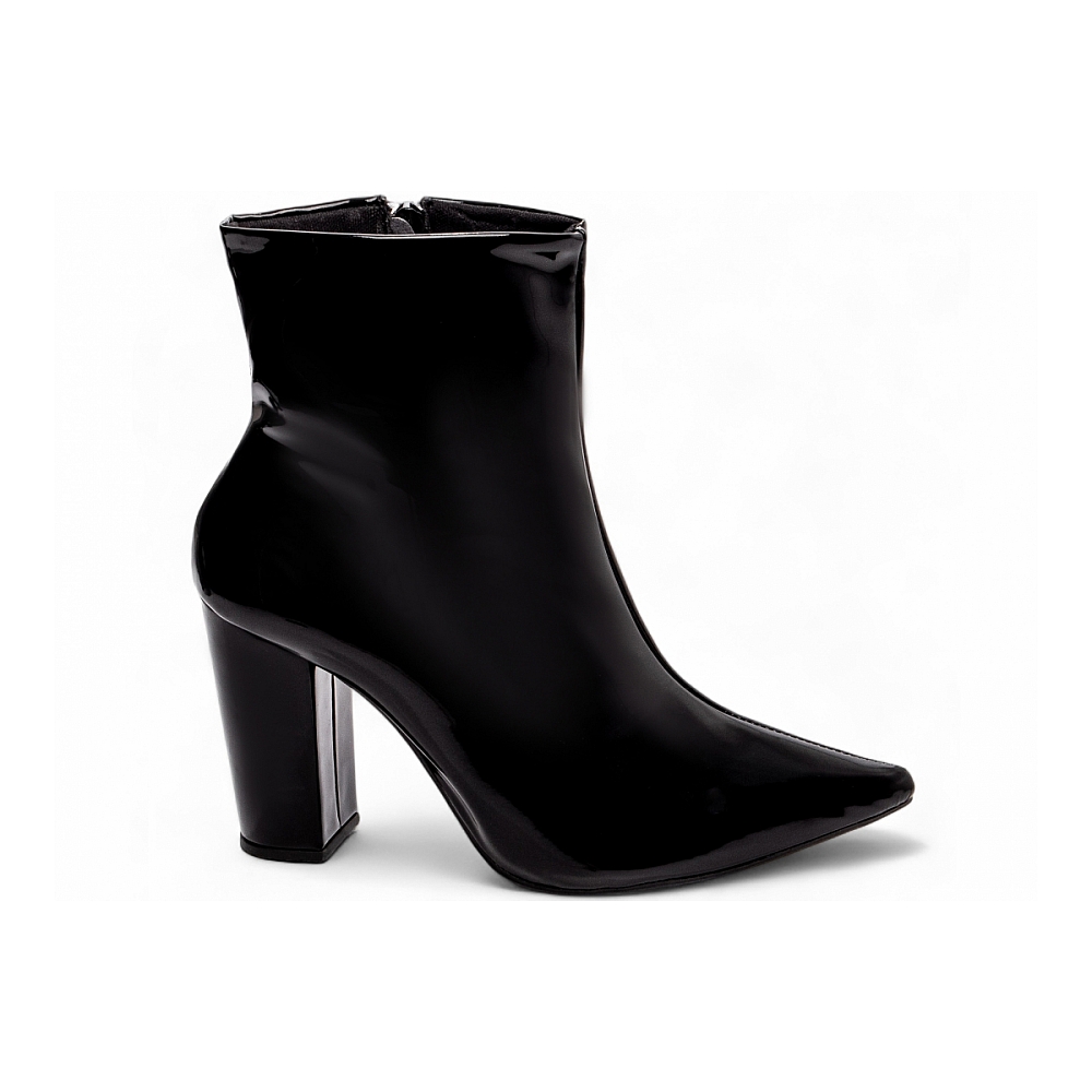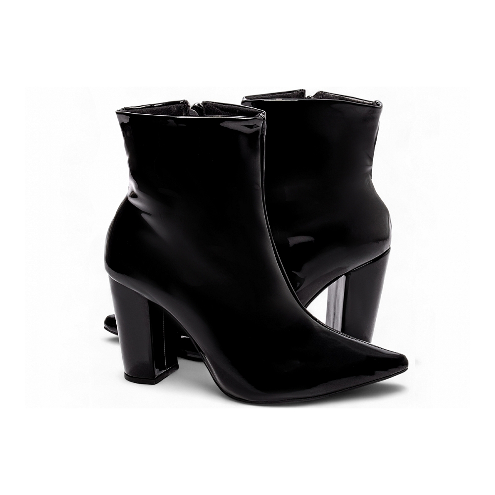 Material: Verniz Preto; Enfeites: Zíper na cor Preto (lateral interna); Palmilha: 8 mm de Espessura, Espuma em EVA, e Taloneira Napa Preto; Forro: Cacharrel, material espumado para maior conforto na cor Preto; Salto: 9 cm de Altura encapado em Verniz Preto; Solado de PVC na cor Preto.