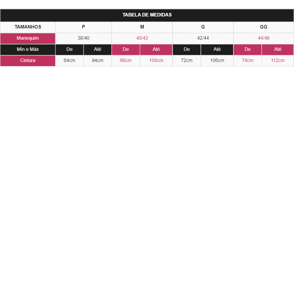 Cintura: de 64cm até 94cm