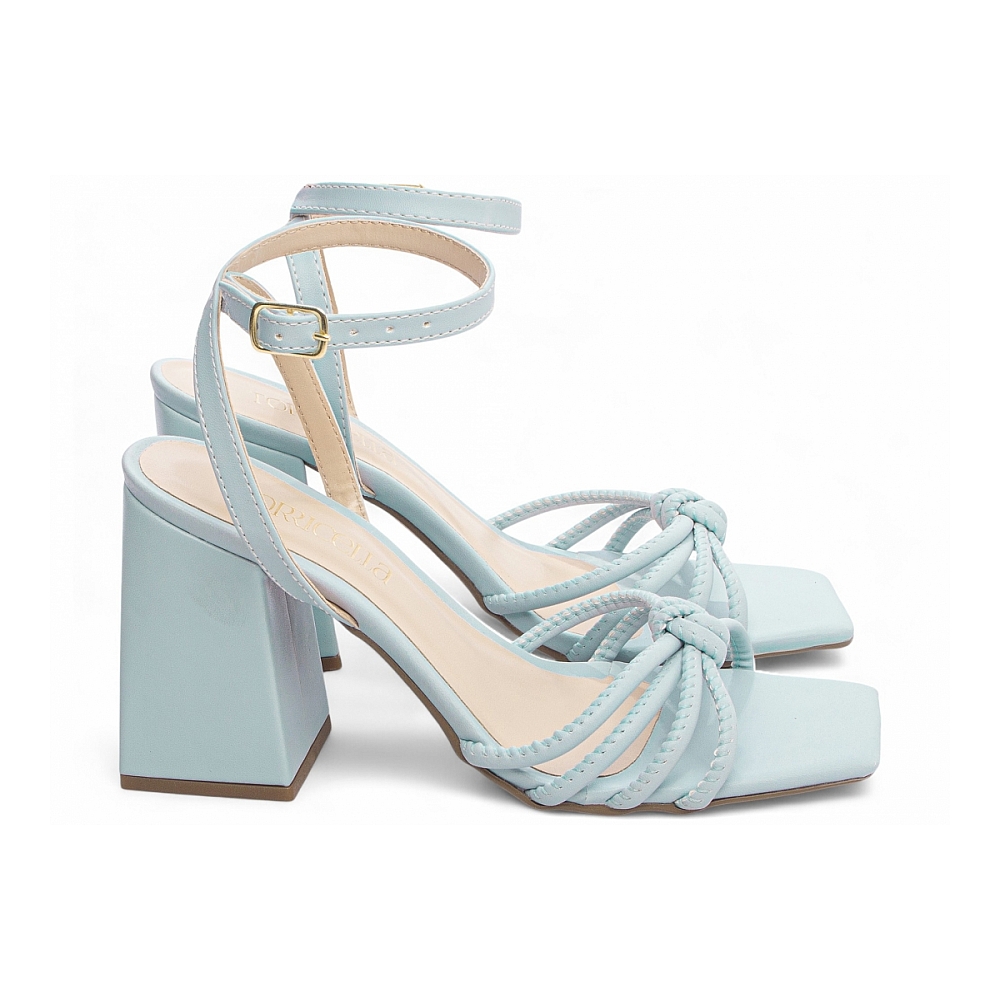 Salto: Grosso com 9 cm de Altura Revestido em Napa Azul;