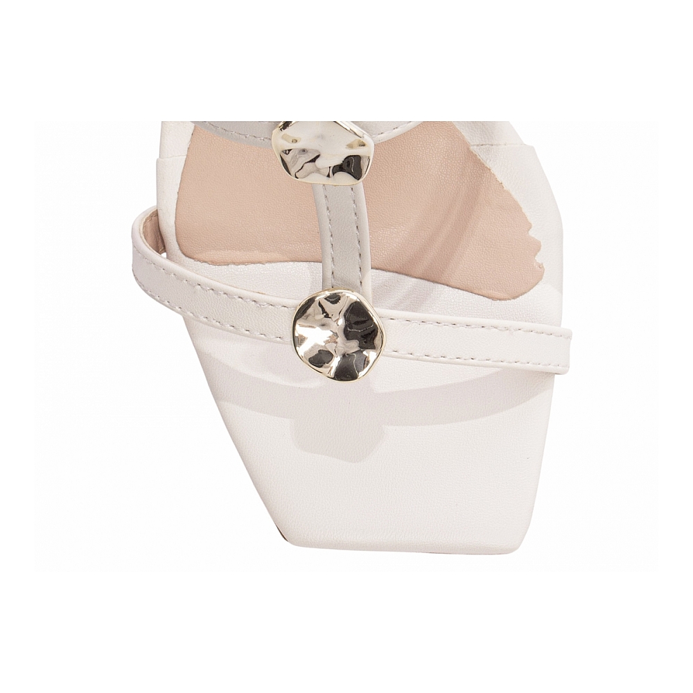 Palmilha: 8 mm de Espessura, Espuma em EVA, Revestida em Napa Off White e Taloneira Napa Bege;