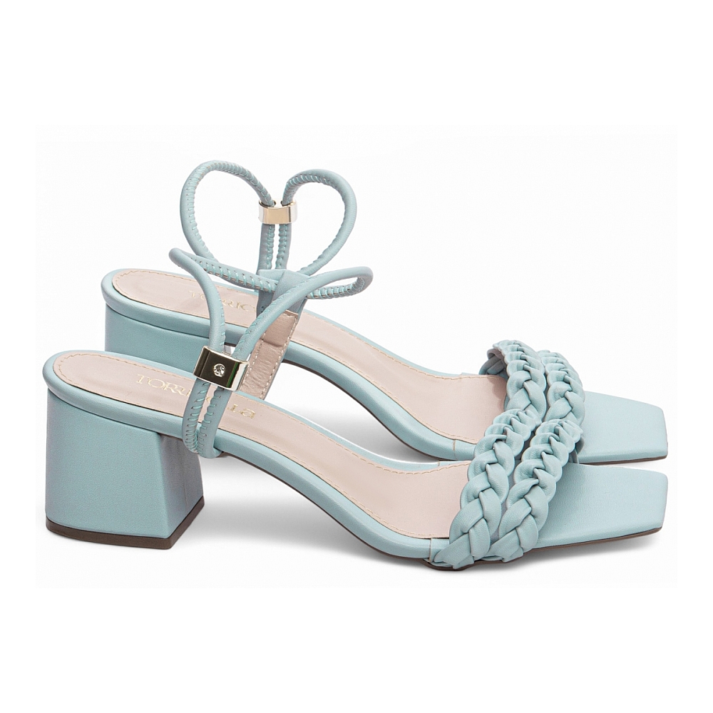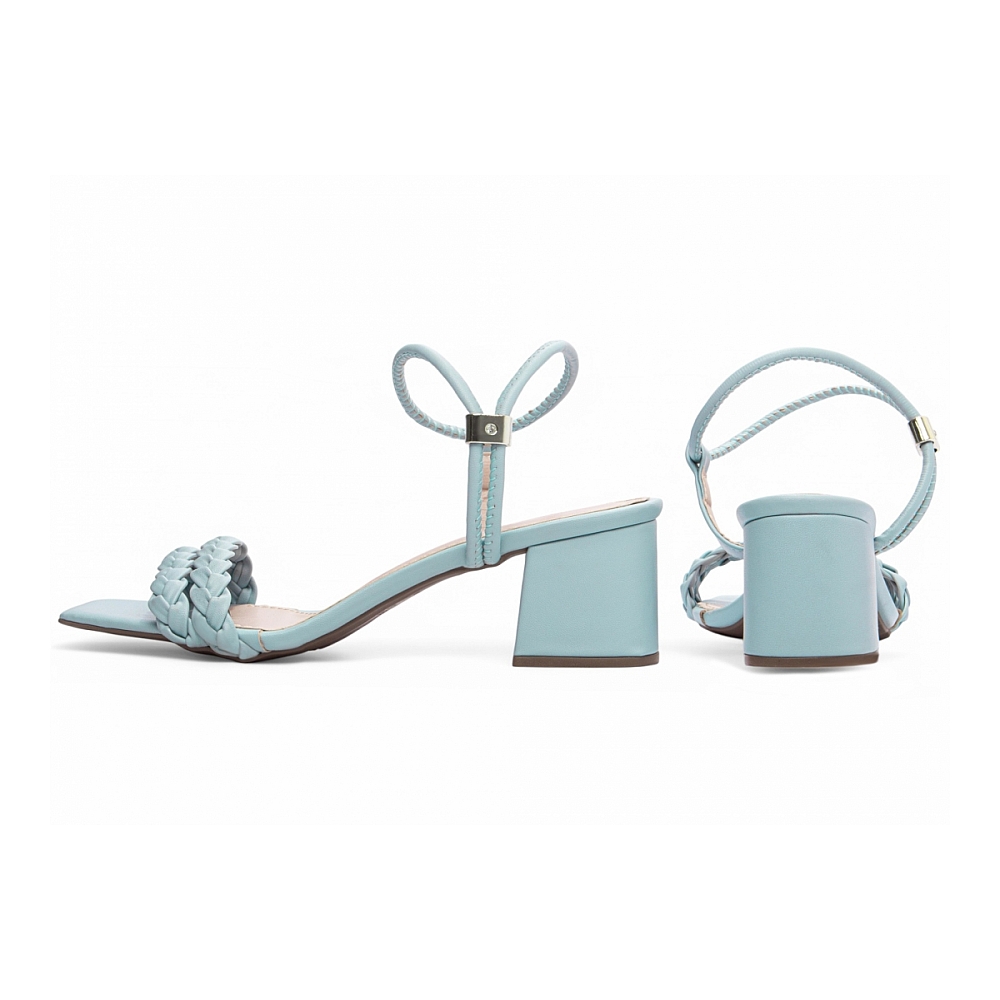 Palmilha: 8 mm de Espessura, Espuma em EVA, Revestida em Napa Azul e Taloneira Napa Bege;
