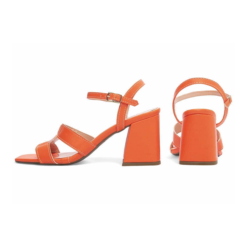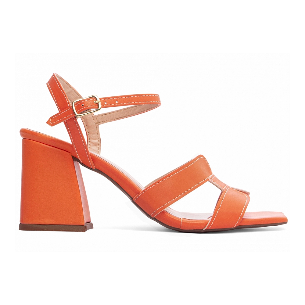 Salto: Grosso com 7 cm de Altura Revestido em Napa Laranja;