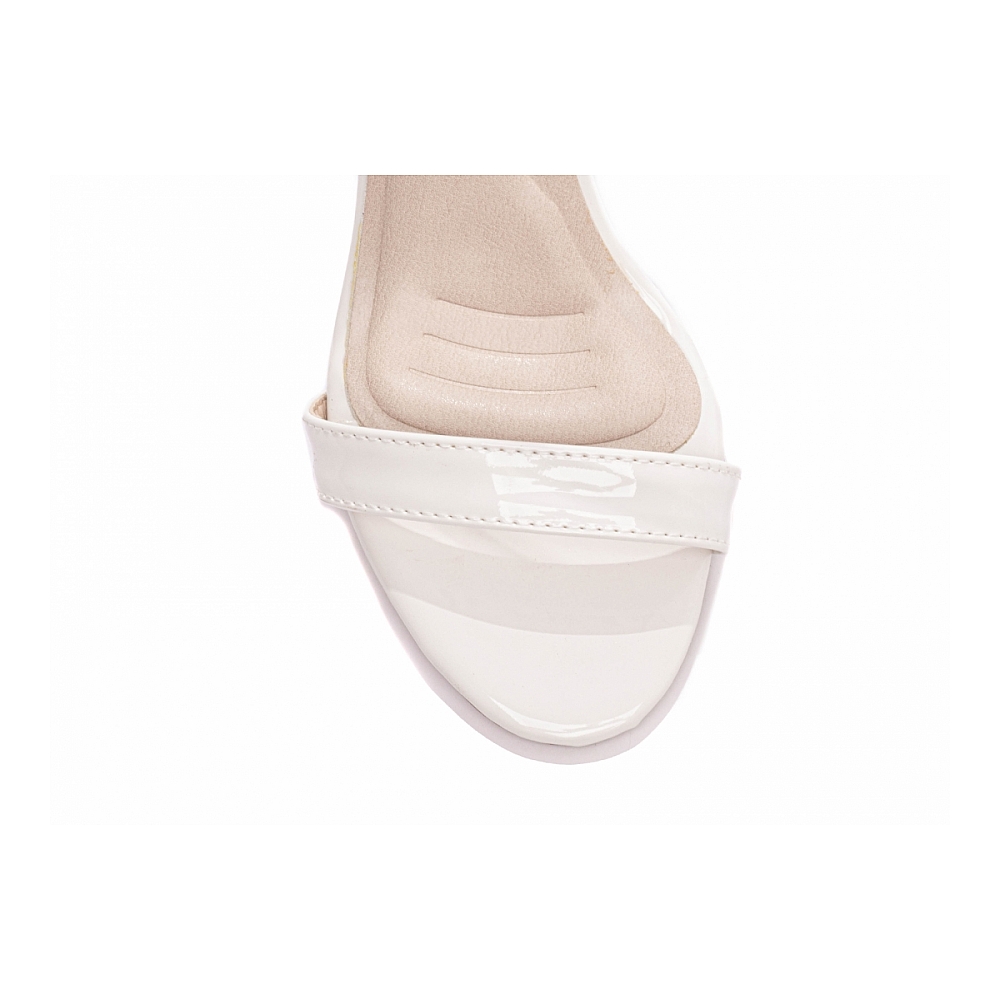 Palmilha: 8 mm de Espessura, Espuma em EVA, Revestida em Verniz Off White e Taloneira Napa Bege;