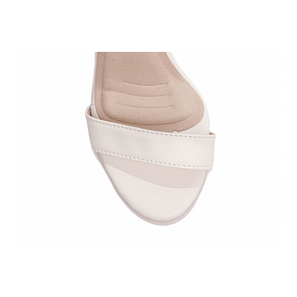 Palmilha: 8 mm de Espessura, Espuma em EVA, Revestida em Napa Off White e Taloneira Napa Bege;
