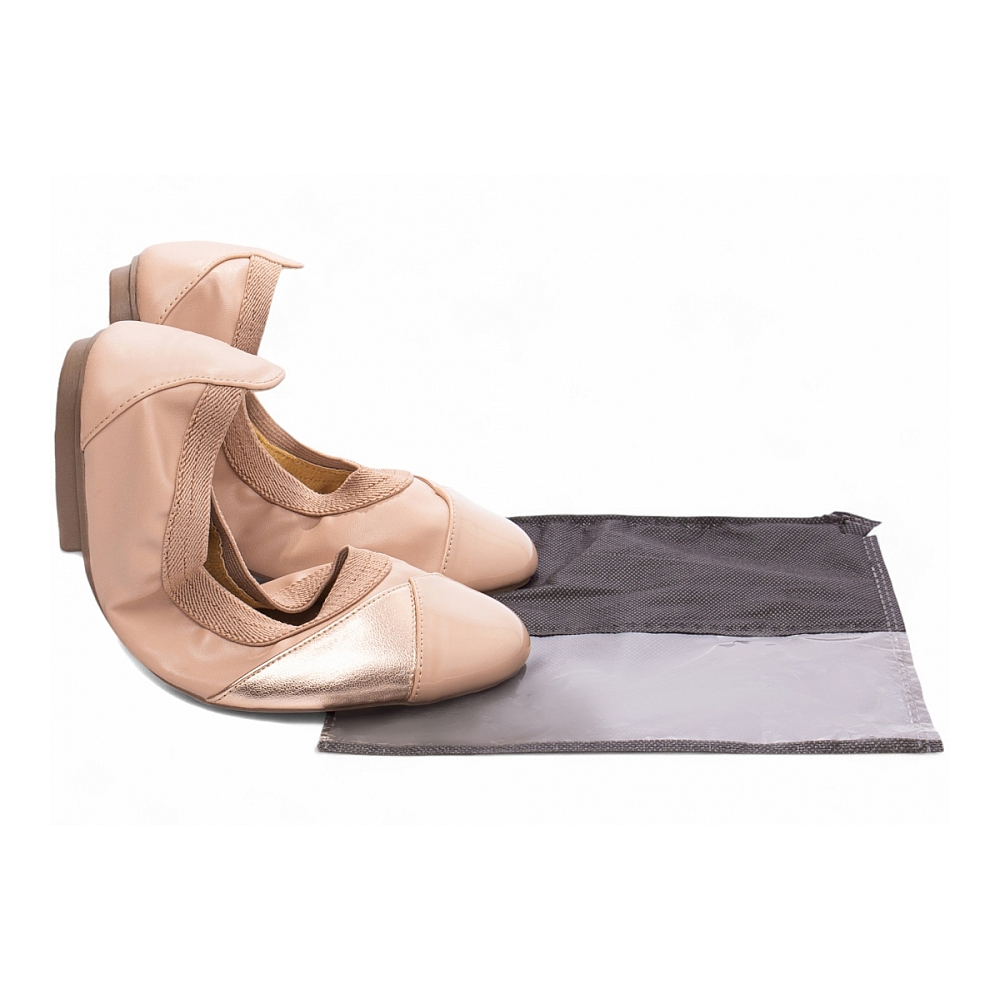 Material: Verniz Rose / Napa Rose / Napa Metalizado Rose / Elástico Rose; Palmilha: 4 mm de Espessura, Flexível, Espuma em EVA e Revestida em Napa Bege; Solado em TR Flexível com antiderrapante e na cor Bege. * A sapatilha vai dobrada dentro de um saco de material TNT na cor preto. A sapatilha Maria Mole, também conhecida como bag shoes, é um tipo de calçado feminino, geralmente feito de material flexível, como tecido ou malha. Ela tem um design muito simples e confortável, com sola fina e macia, sem muitos detalhes estruturais. O nome “Maria Mole” vem justamente dessa característica de ser um calçado mais mole, que se ajusta facilmente aos pés e oferece uma sensação de conforto e leveza. Essas sapatilhas costumam ser dobráveis e fáceis de carregar, daí o nome “bag shoes” (sapatos de bolsa), pois podem ser guardadas em uma bolsa ou mochila com facilidade, sendo uma opção prática para quem precisa de um calçado extra ou deseja algo confortável para trocar ao longo do dia. Elas são populares por sua praticidade e conforto, sendo usadas em ocasiões mais informais ou até para substituir saltos após longos períodos de uso.