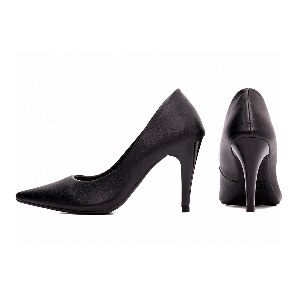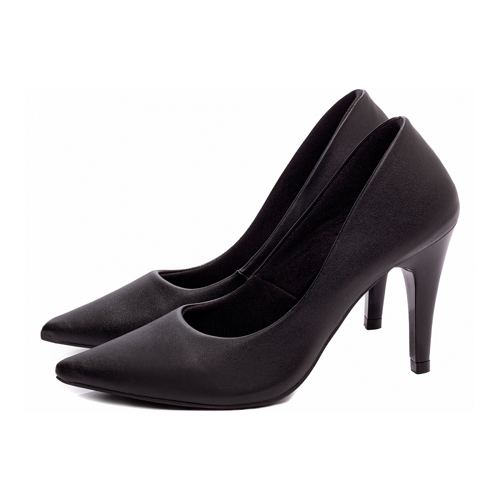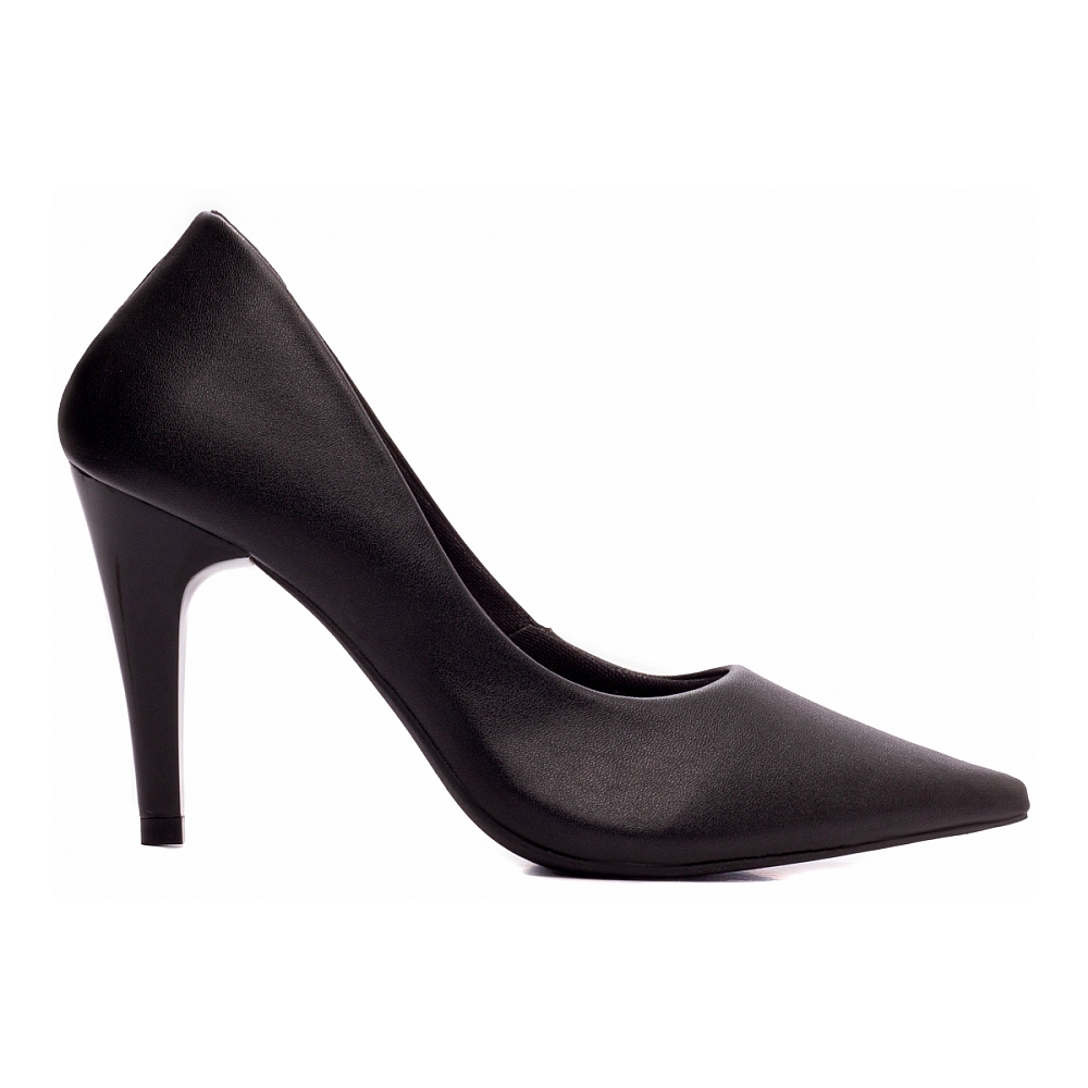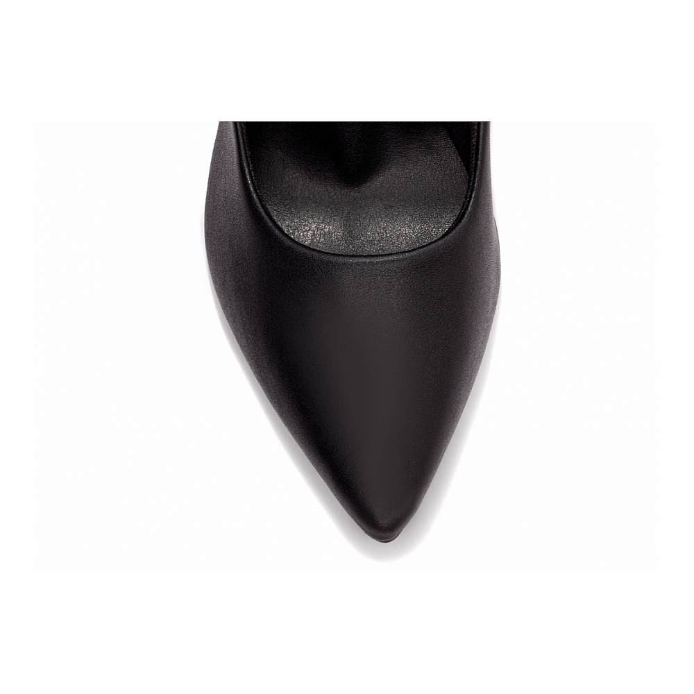 Material: Napa Preto; Palmilha: com 8 mm de Espessura, Espuma em EVA, e Taloneira Napa Preto; Forro: Cacharrel, material espumado para maior conforto, na cor Preto; Salto: 10 cm de Altura Pintado na Cor Preto; Solado de PVC antiderrapante na cor Preto.