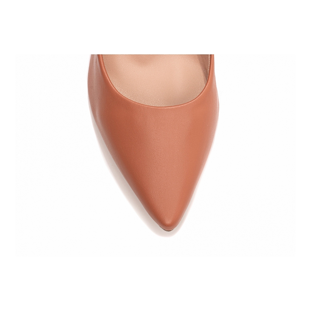 Material: Napa Caramelo; Palmilha: com 8 mm de Espessura, Espuma em EVA, e Taloneira Napa Bege; Forro: Cacharrel, material espumado para maior conforto, na cor Bege; Salto: 10 cm de Altura Pintado na Cor Caramelo; Solado de PVC antiderrapante na cor Bege.