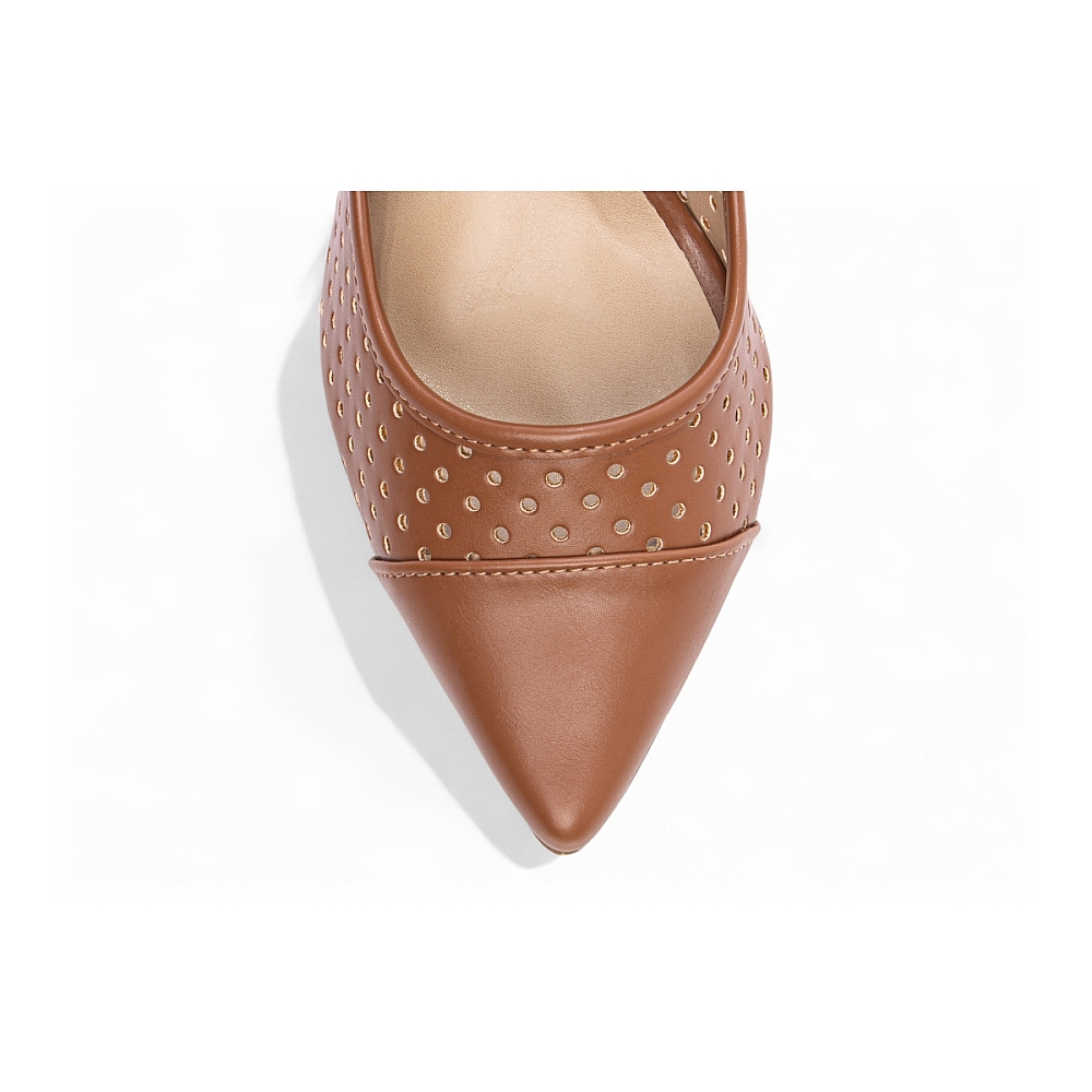 Palmilha: 8 mm de Espessura, Espuma em EVA, Revestida em Napa Caramelo e Taloneira Napa Bege;