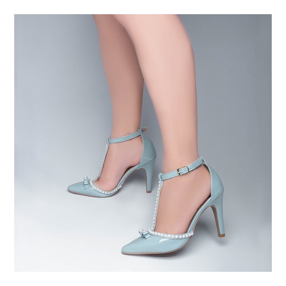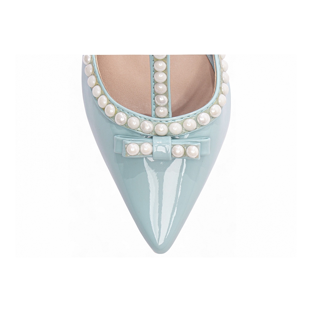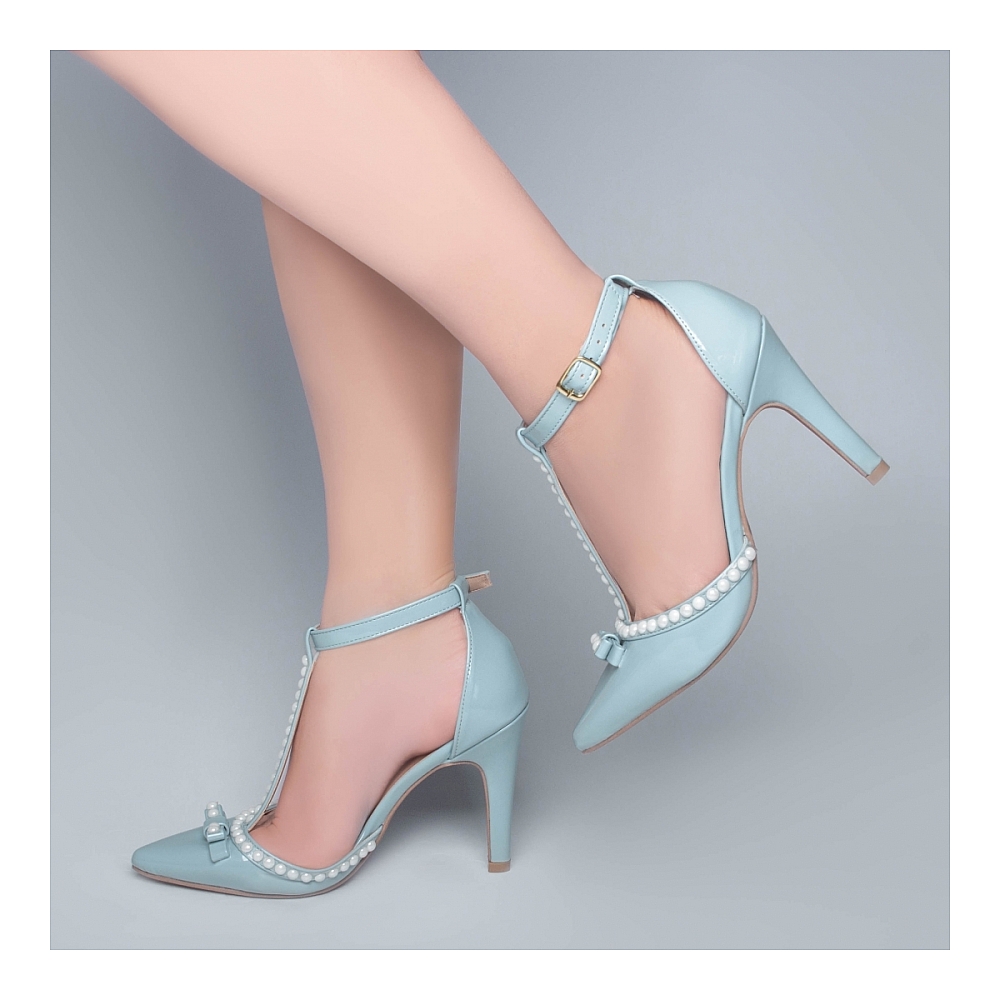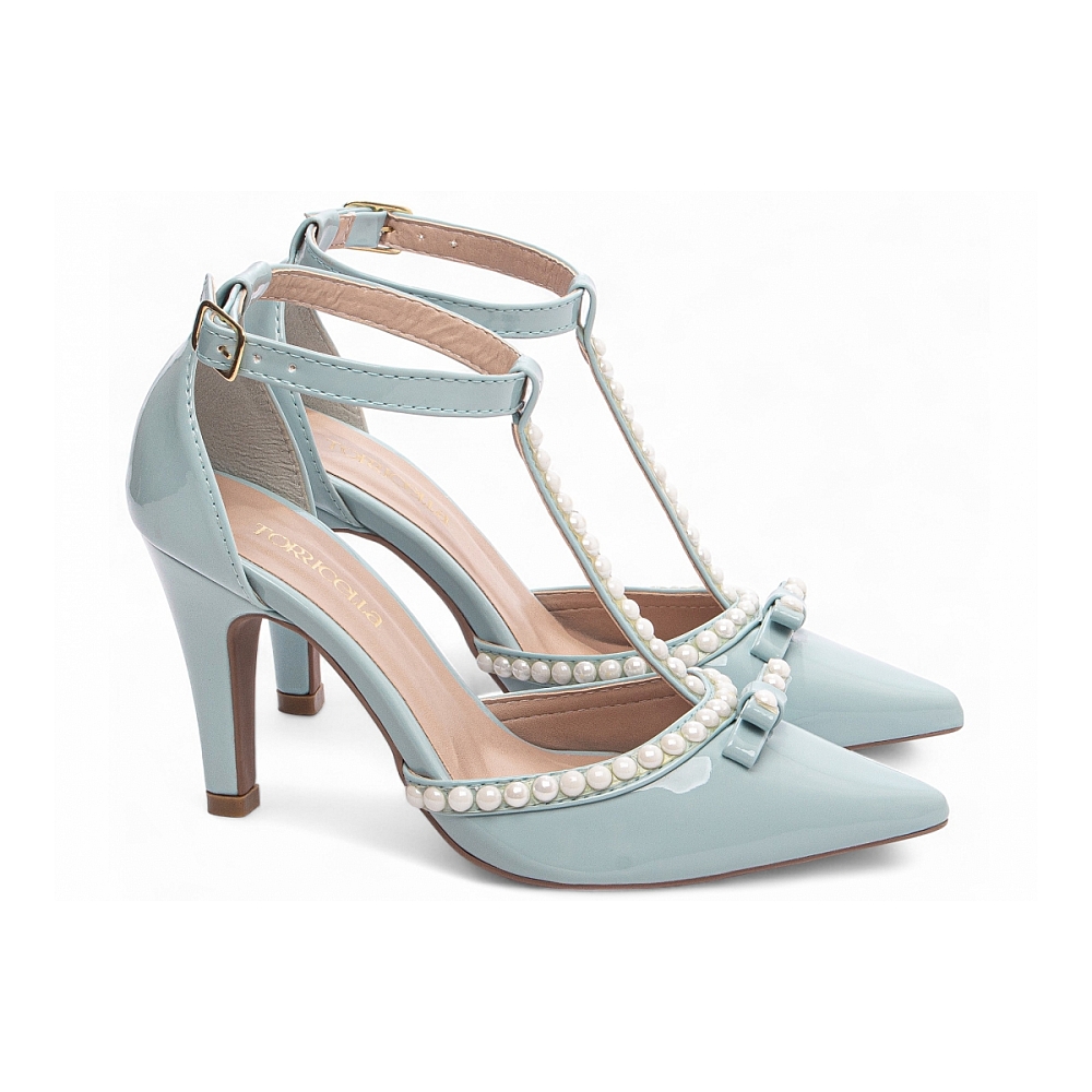 Salto: 9 cm de Altura Revestido em Verniz Azul;