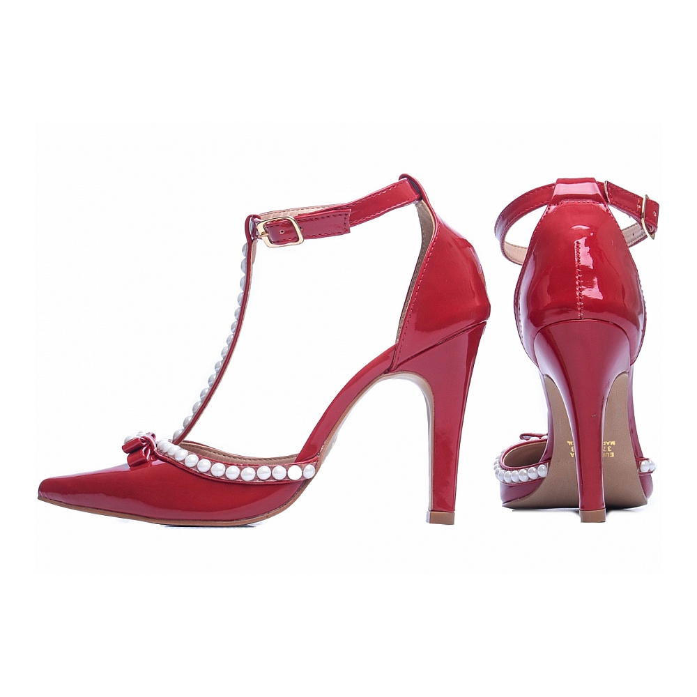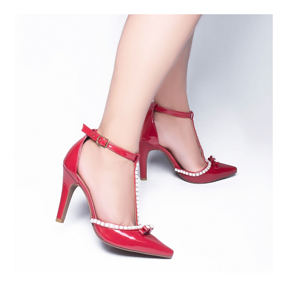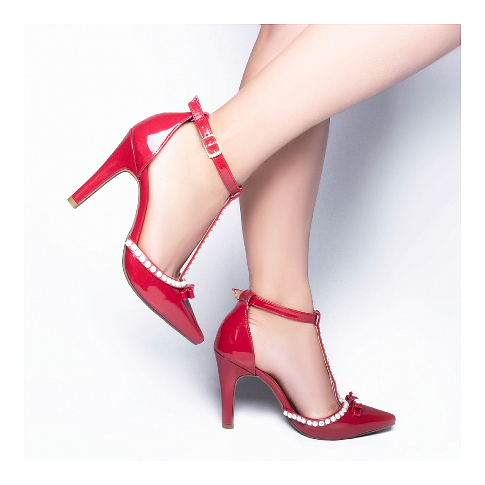 Salto: 9 cm de Altura Revestido em Verniz Vermelho;