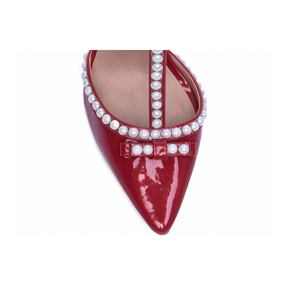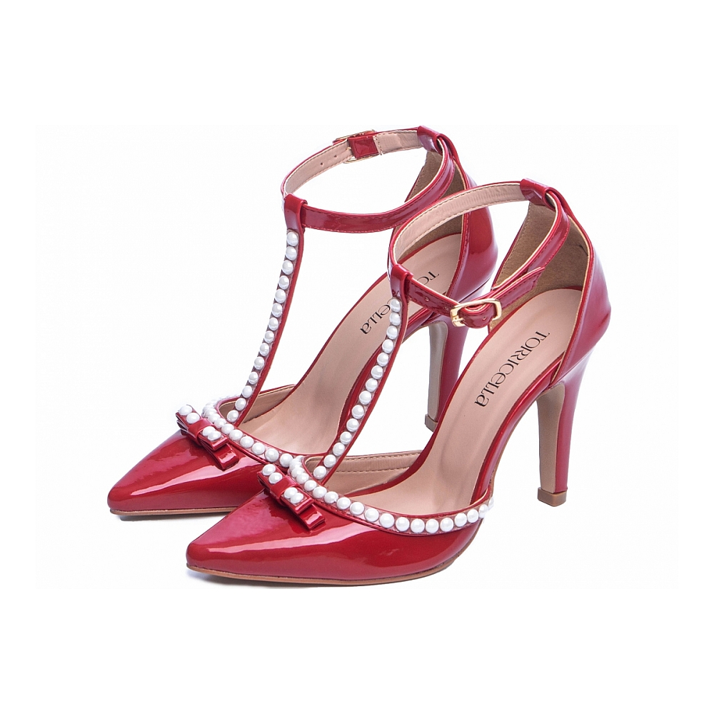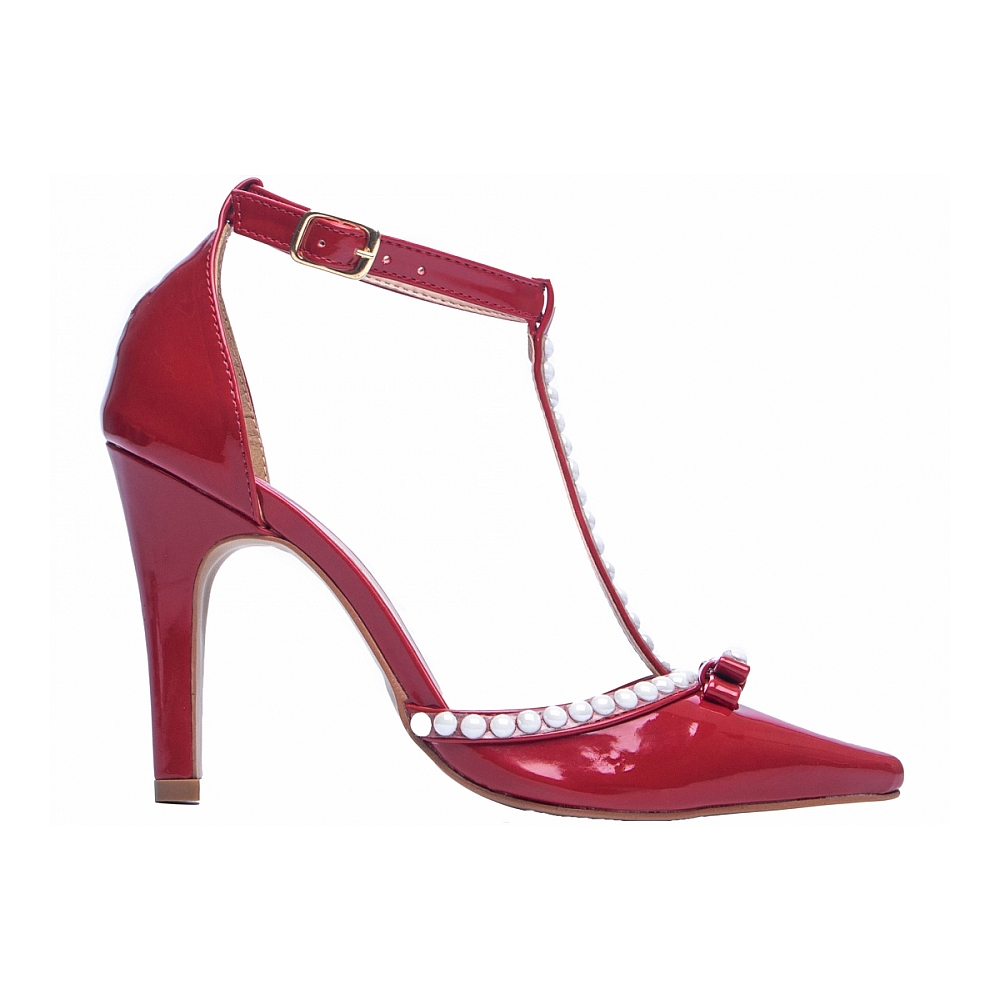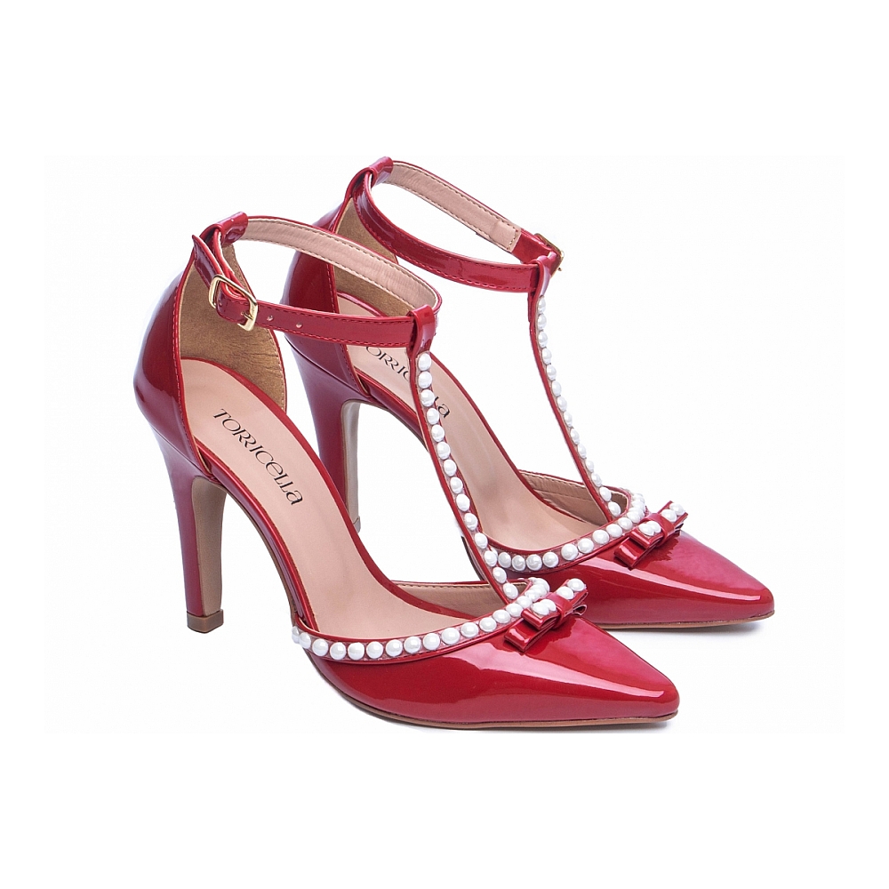 Salto: 9 cm de Altura Revestido em Verniz Vermelho;