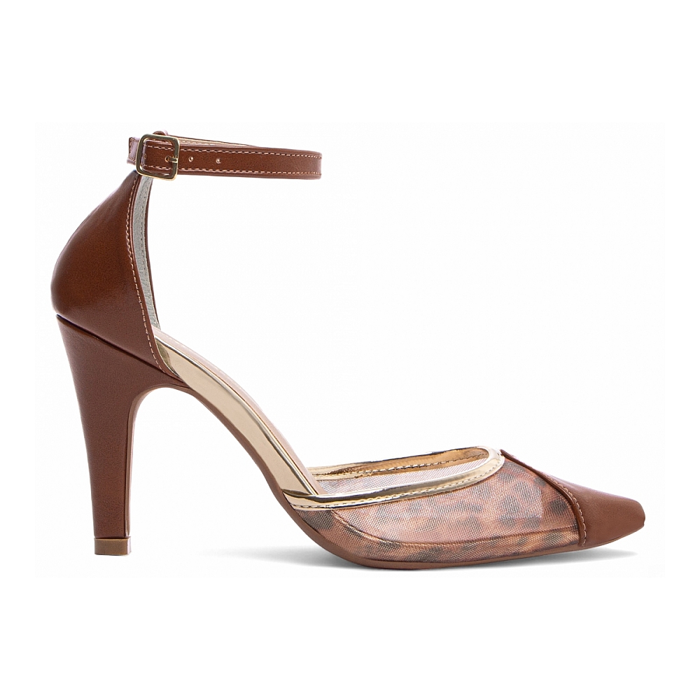 Material: Napa Caramelo / Metalizado Speechio Ouro Light / Tela Onça;