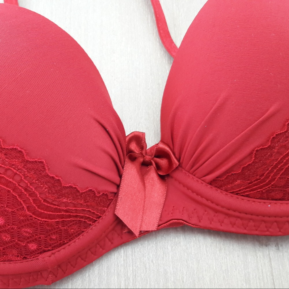 O modelo possui bojo, com alças para melhor ajuste ao corpo e fecho na parte posterior com colchetes duplo. Detalhe em lacinho de cetim.
