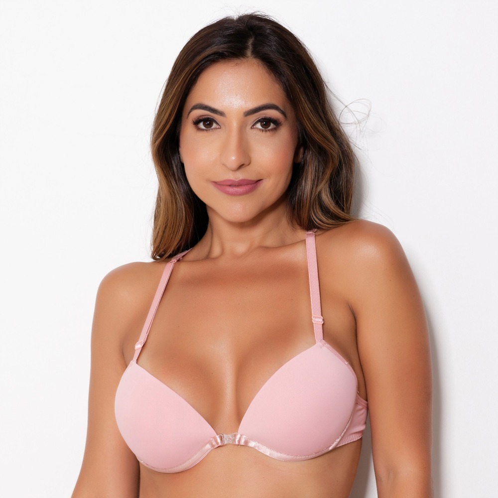 O sutiã Luna é ideal para mulheres que adoram sofisticação, sem perder o conforto e a praticidade. Peça modelo nadador com alças fixas e ajustáveis, possui bojo e aro de sustentação, o fechamento é frontal por encaixe. O toque de elegância fica por conta do detalhe de renda na parte traseira finalizada pela aplicação de pingente pendente no entremeio.