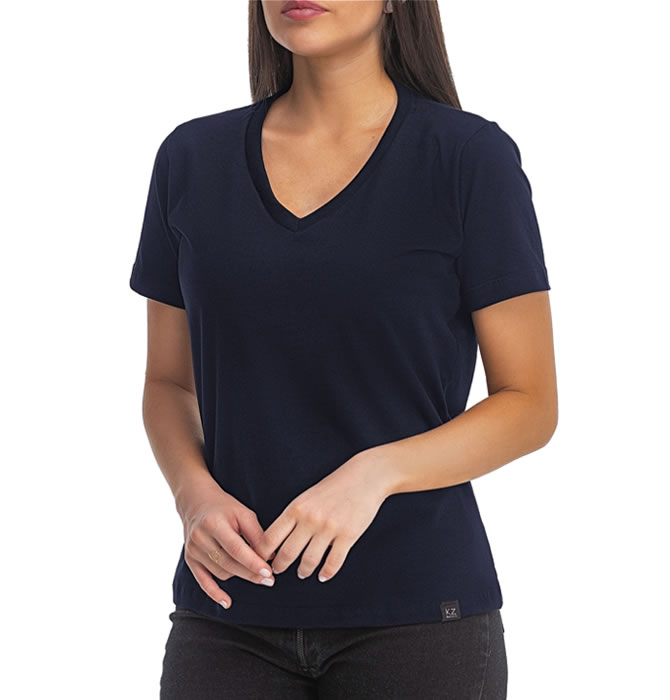 T-Shirt Básica Gola V Azul Marinho