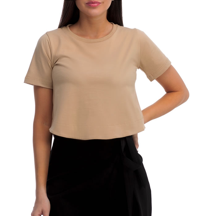 Já a modelagem dessa T-Shirt tem um caimento mais largo, com gola redonda toda rebatida na costura. A barra é arredondada, com um comprimento não tão curtinho, na altura do cós. Confortável e versátil!